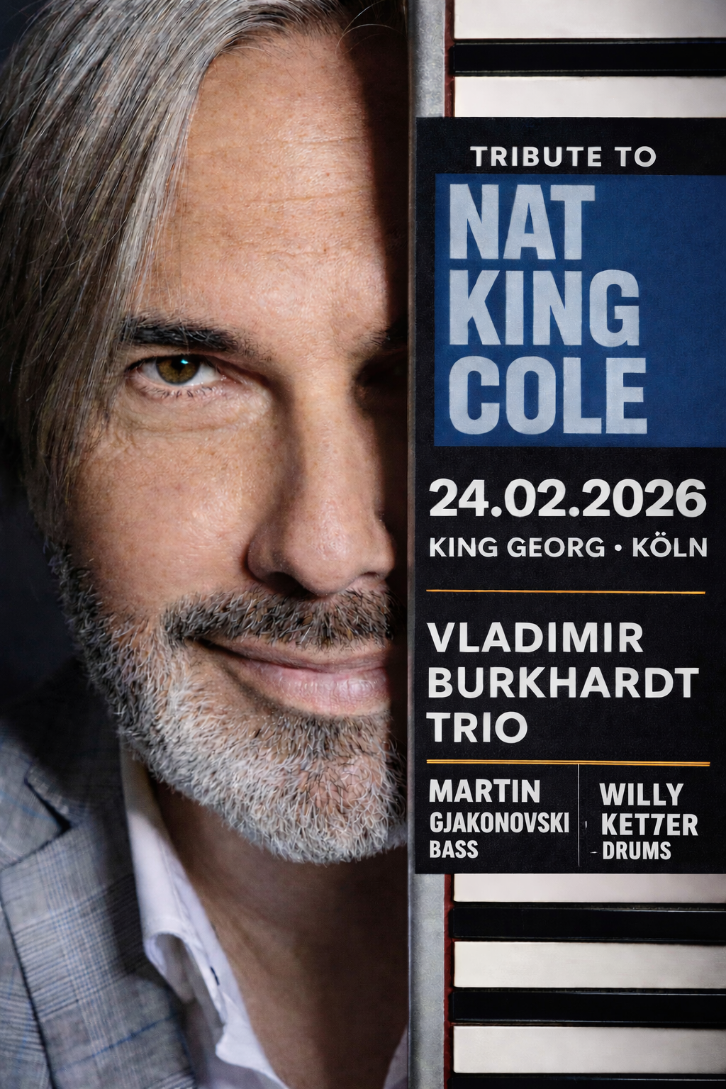 Ein eleganter Abend voller zeitloser Klassiker im Stil von Nat King Cole.Warme Stimme, stilvolles Piano und echte Swing-Eleganz.